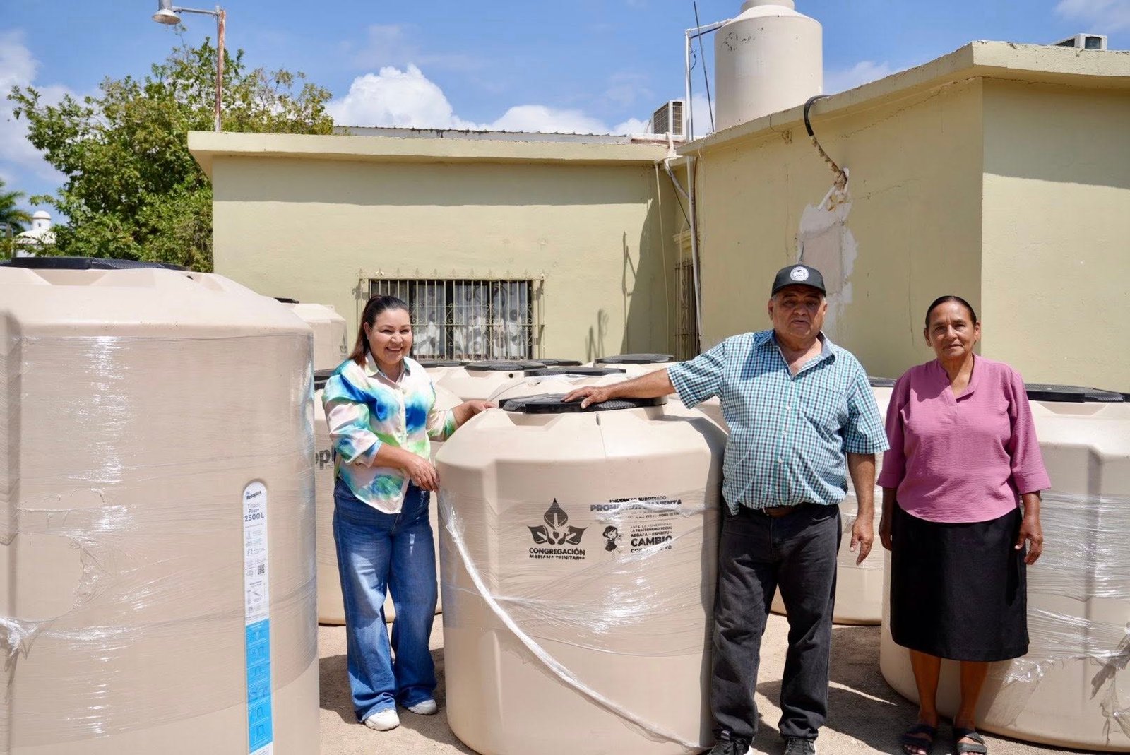 Con gran satisfacción se hizo entrega de 15 tinacos con capacidades de 2100, 800 y 400 litros respectivamente, además de 10 cisternas de 5000, 1800 y 2500 litros, gracias al programa de corresponsabilidad social para superar la pobreza de la congregación “Mariana Trinitaria”.