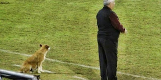 Se trata de Tesapara, una can que acompaña en el banquillo al DT Carlos Jara Saguier, al equipo cuando juega futbol y hasta los imita cuando entrenan.