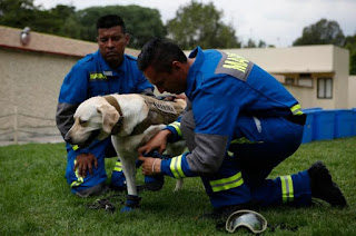 La Fundación Decide Grandes Valores develaron una estatua en honor a Frida, la perrita rescatista de @SEMAR_mx y su cuidador Israel Arauz esta ubicada en el parque ecológico “Revolución Mexicana” #Puebla