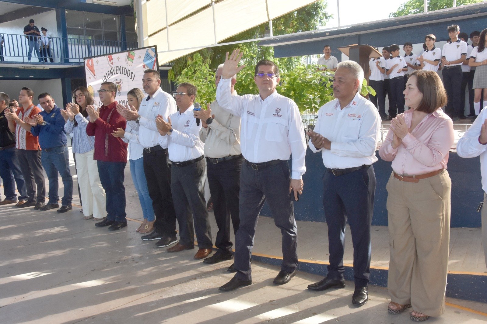Navojoa, Sonora, 1 de Septiembre 2025.- El regreso a clases de más de 25 mil estudiantes, de escuelas del nivel básico, atestiguó este lunes el alcalde Jorge Alberto Elías Retes, al presidir el arranque del ciclo 2025-2026 en la secundaria “Othón Almada número 2”, acompañado de regidores, académicos, funcionarios y como anfitrión el director Francisco Félix Mendívil.
