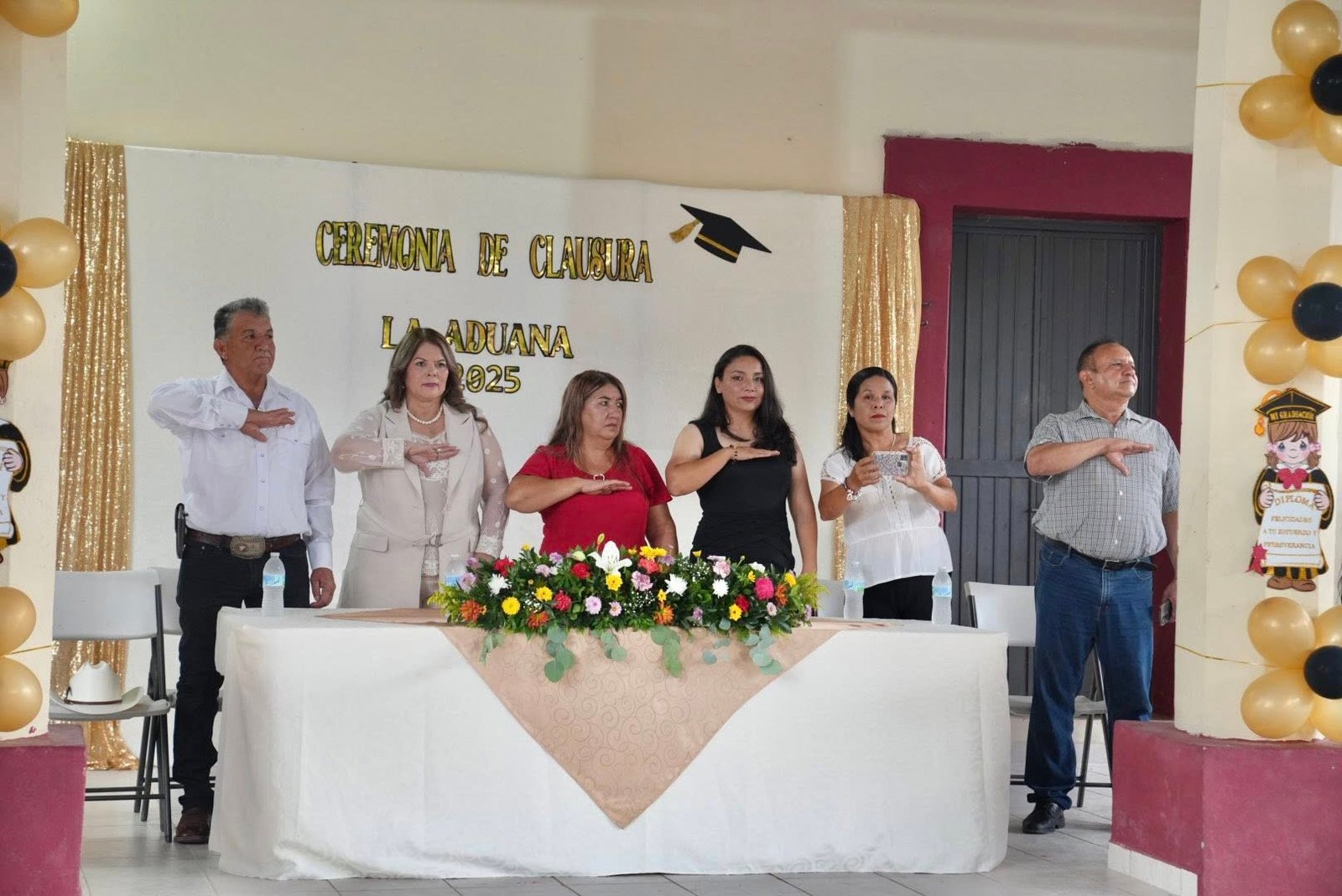 5 de julio de 2025 – La comunidad de La Aduana se llenó de alegría y emoción con la ceremonia de graduación de las niñas y niños de las Escuelas Telesecundaria 31, la primaria Leona Vicario y del preescolar La Estrellita.