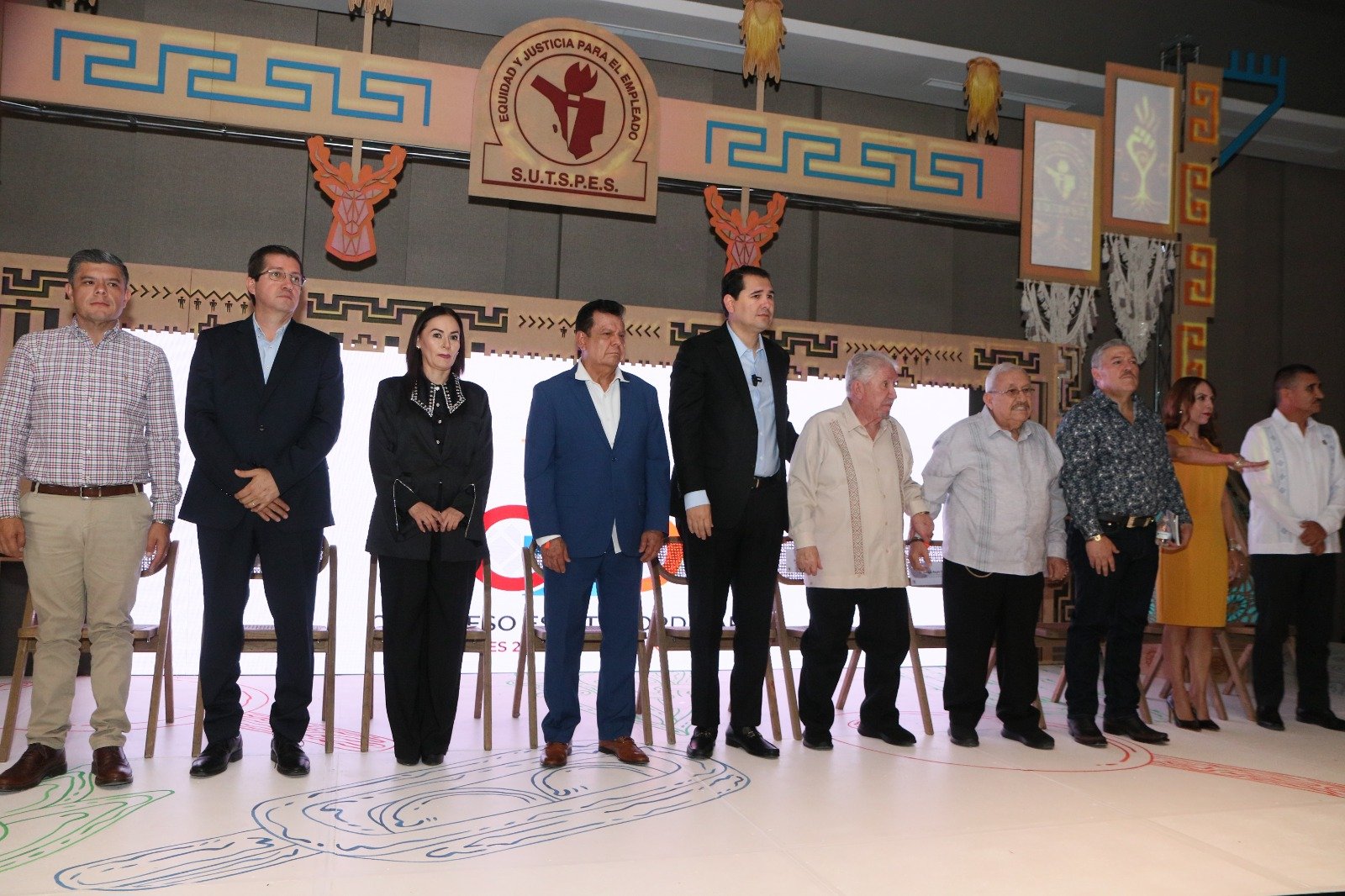 La concentración estuvo presidida por el dirigente federal (FSTSGEM), Rafael Reyes Montemayor; el secretario general del SUTSPES en Sonora, Luis Antonio Castro Ruiz; por la sección Navojoa Maribel Navarro Piña; como invitado especial el secretario de Gobierno, Adolfo Salazar Razo, acompañado del mandatario Elías Retes y el presidente de Huatabampo, Alberto Vásquez.