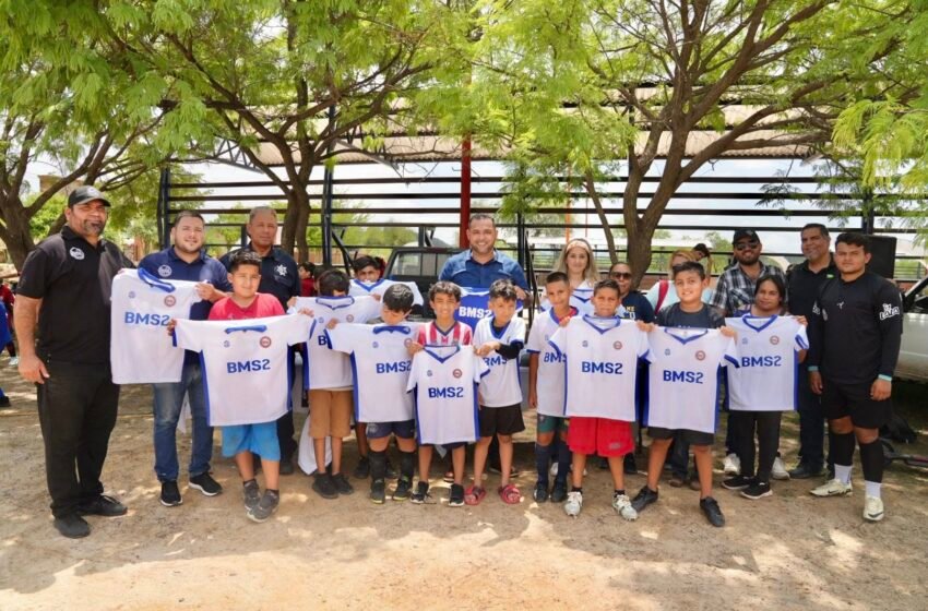 y también se entregaron uniformes a equipos de la cabecera municipal y comunidades como Piedras Verdes, Minas Nuevas, así como a las escuelas Revolución, Bartolomé I y II y San Felipe Neri.