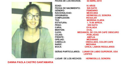 Este día se activó la Alerta Amber Sonora por la desaparición de la jovencita Danna Paola Castro Santamaría.