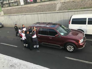 Sobre los carriles centrales de Viaducto, a la altura de la calle Anáhuac, los secuestradores abandonaron la camioneta color vino con el cuerpo de una de las víctimas que tenía un disparo en la cabeza.