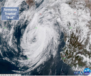 Navojoa, Sonora; a 14 de junio de 2018. La Unidad Municipal de Protección Civil (UMPC), continúa con el monitoreo la Tormenta Tropical “BUD” que se localizaba a las 14 horas, a 80 kilómetros al sur de Cabo San Lucas, Baja California Sur, moviéndose al Nor-Noroeste a 11 km/h, con vientos de 75 km/h y rachas de 95 km/h.