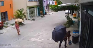 En redes sociales circula un video desde el exterior de una unidad habitacional en Coatzintla, Veracruz, donde puede ver a dos mujeres que van caminando y de repente una de ellas se detiene afuera de una vivienda donde se encontraba un perro.
